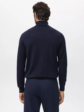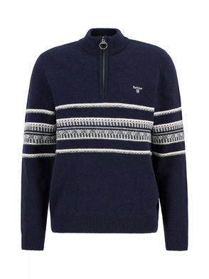 Madeirap Zip Neck Cotton Rib Knit Jumper, Navy