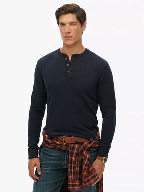 Cotton Regular Fit Long Sleeve Grandad Top, Eclipse Navy