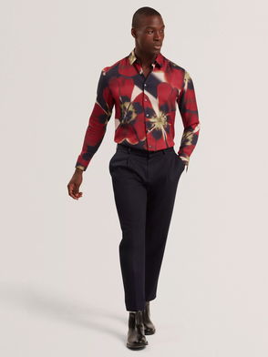 Iskran Floral Print Cotton Blend Shirt, Navy