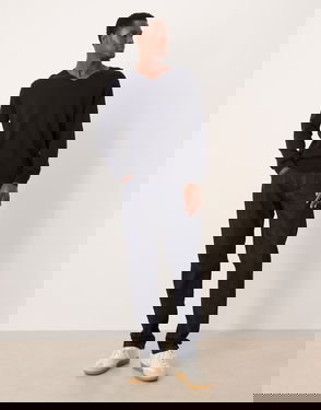 100% Cotton Long Sleeve Crew Neck T-shirt In Navy