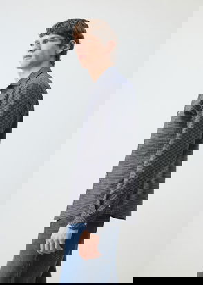 Poplin Cotton Regular Fit Dogtooth Shirt, Navy
