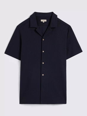 Cotton Blend Regular Fit Textured Cuban Collar Shirt, Navy
