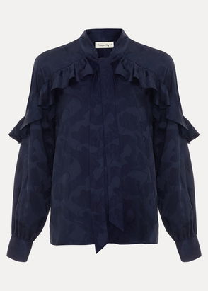 Mid Rise Pinstripe Trousers In Navy Pinstrp