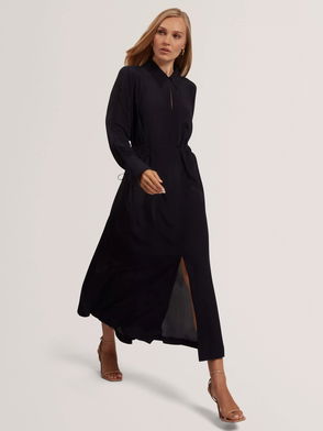 Rhaeaa Long Sleeve Midi Shirt Dress, Dark Navy