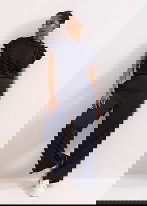 Soft Flow Strappy Back Boxy Long Sleeve Top, Navy Blue