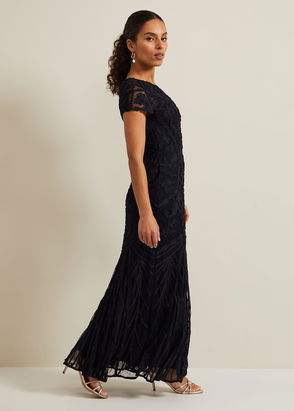 Floral 3D Embellished Halter Tie Neck Woven Maxi Dress