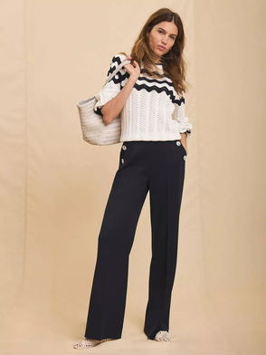 Side Trim Wide Leg Trousers, Blue Navy
