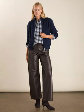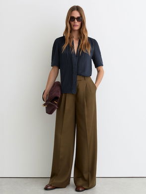 Mel Cenre Crease Wide Leg Mid Rise Trousers, Navy