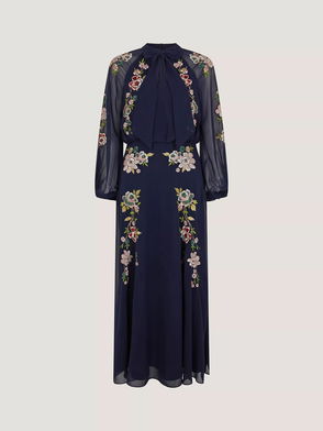 Annika Embroidered Floral Dress, Navy