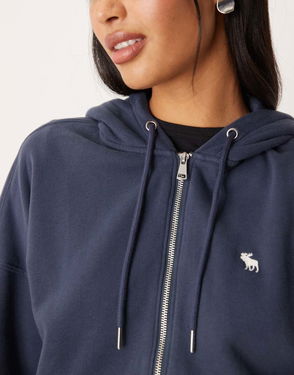 Abercrombie & Fitch Icon Logo Fleece Zip Through Hoodie In Navy
