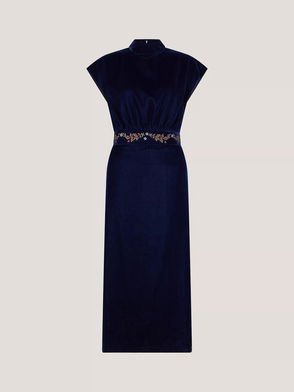Grace Velvet Cap Sleeve Midi Dress, Navy