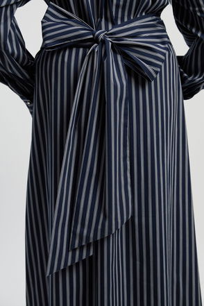Stripe Cotton Poplin Drama Sleeve Woven Wrap Detail Shirt Dress