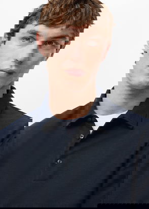 Silk-Satin Concealed-Placket Shirt In Navy Polka Dot