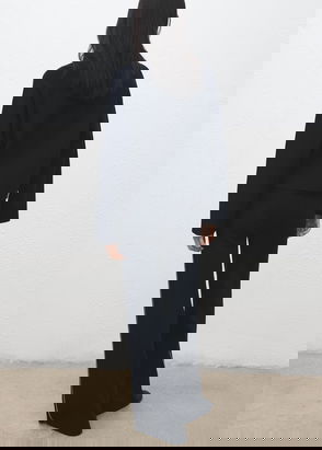 Featuring Kaia Gerber Long Sleeve Draped Back Maxi Dress In Navy