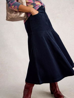 Long Logo-Belt Stretch Cotton-Blend Midi Skirt