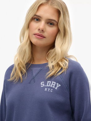 Essential Logo Retro Long Sleeve Top In Optic/mariner Navy
