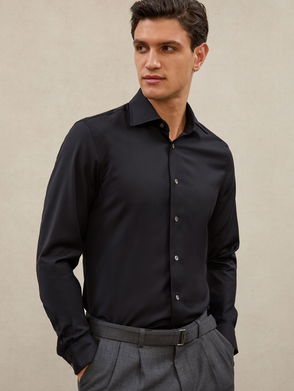 Slim Fit Stretch Double-Cuff Shirt Cotton-Blend In Navy