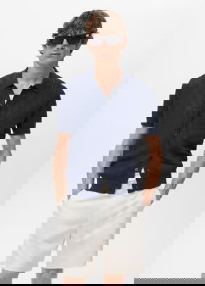 Zip Long Sleeve Rugby Polo Shirt In Navy