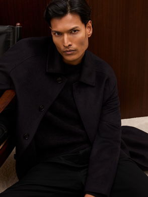 Wool-Blend Internal-Gilet Overcoat In Navy
