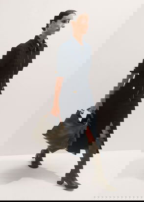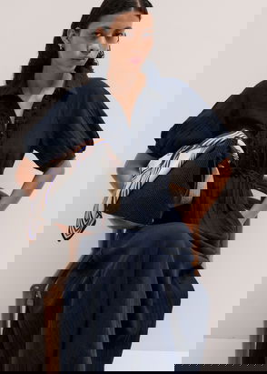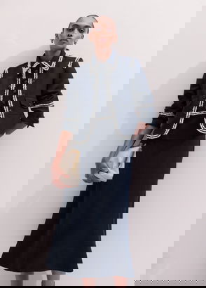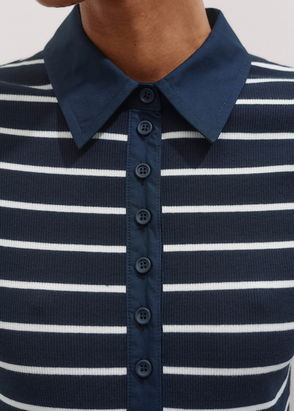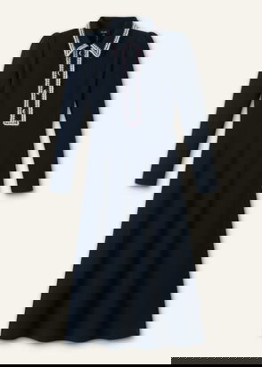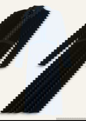 Mixed Media Shirt Collar Maxi Dress Navy/Soft White