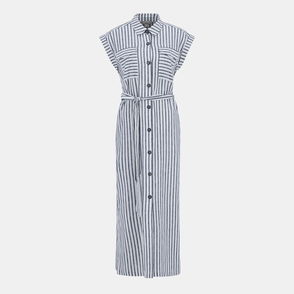 Seersucker Maxi Shirt Dress + Belt Navy