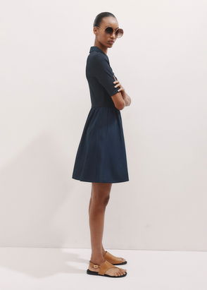 Mixed Media Shirt Collar Short Dress Navy