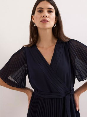 Petite Abigail Abstract Pleated Dress, Navy
