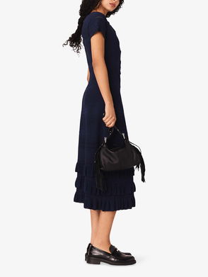 Rib-Knit Stripe-Trim Pleated Midi Dress In Navy