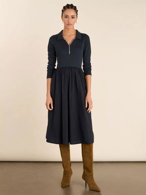 Kate Zip Neck Midi Dress, Classic Navy