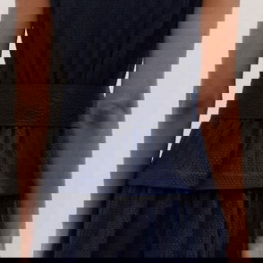 Fit & Flare Cheesecloth Intricate Detail Midi Dress Navy