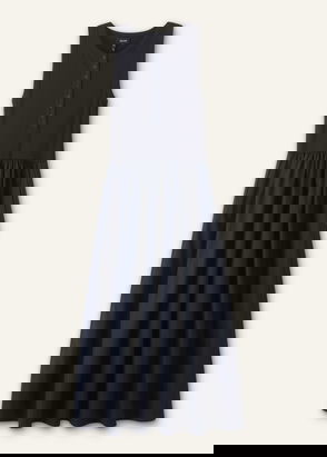 Button-Front Mixed Media Maxi Dress Navy