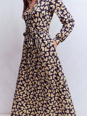 Naomi Heart Print Midi Dress, Navy
