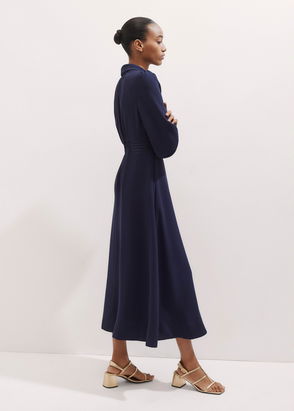Contrast Stitch Midi Dress Navy