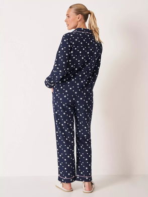 Stars Button Through Long Pyjama Set, Dark Navy