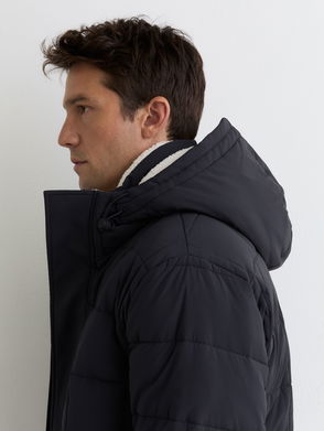 Fleece-Lined Hooded Puffer Jacket In Navy