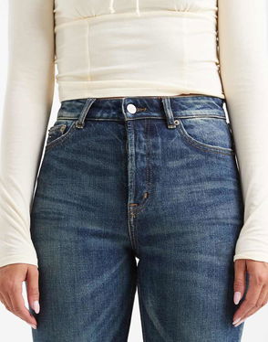 Kira Mid Rise Slim Straight Turn Up Jeans In Dark Wash