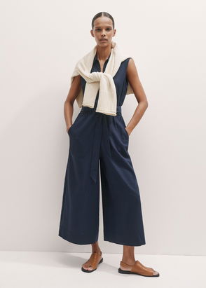 Crease-Less Linen Sleeveless Jumpsuit + Belt Navy