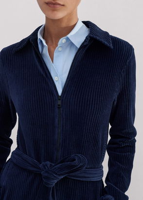 Fluid Cord Velour Jumpsuit + Belt Navy