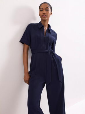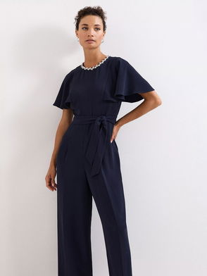 Petite Orwen Embellished Neck Jumpsuit, Navy