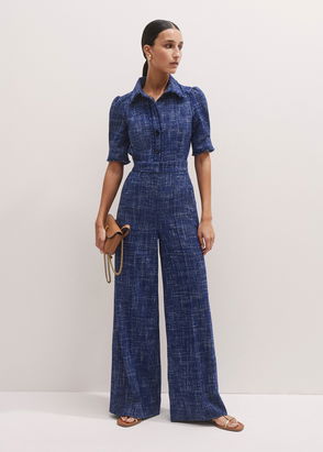 Tailored Button Front Jumpsuit With Square Neck In Dark Blue