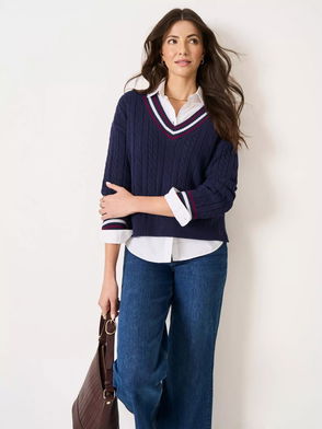 Oversized V Neck Cable Jumper In Eclipse Navy