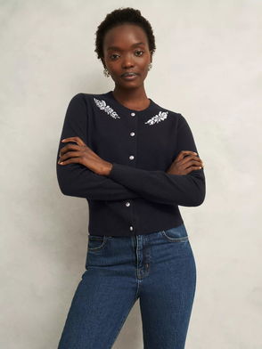 Katie Cotton Merino Wool Blend Jumper, Dark Navy