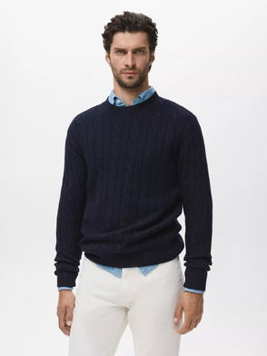 Cotton Chunky Ribbed Crew Neck Jumper, Navy
