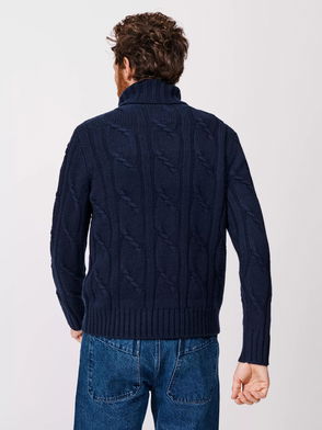 Slouchy Cable Roll Neck Jumper In Deep Navy
