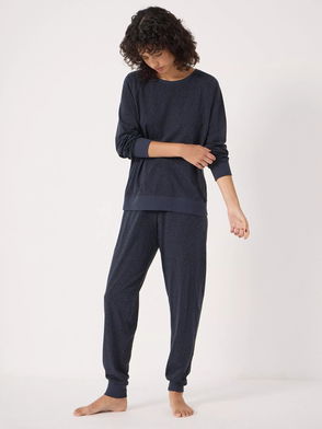 Snowflake Bottom Jersey Long Pyjama Set, Navy