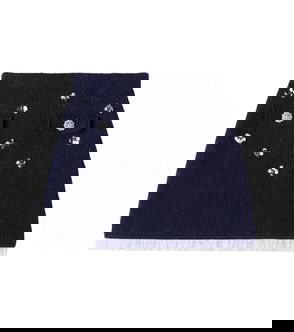 Contrast-Stripe Wrap-Front Wool Midi Skirt