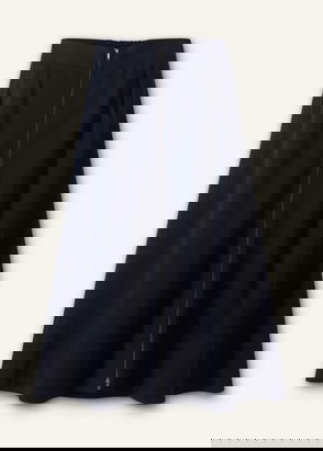 Luxe Travel Tailoring Zip-Front Midi Skirt Navy