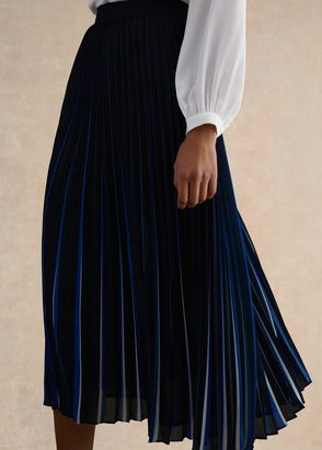 Cotton-Blend Pleated Maxi Skirt In Navy