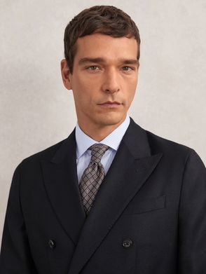 Wool-Silk Polka-Dot Suit Trousers Classic-Fit In Midnight Navy