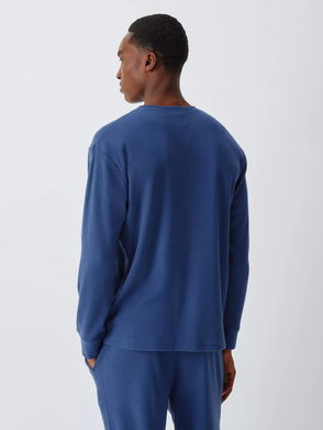 Waffle Henley Top, Blue Navy